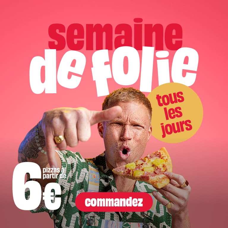 Du 13 au 19 avril 2026, c'est la semaine de folie chez Domino's ! Cette semaine seulement, commandez vos pizzas préférées à partir de 6 € à emporter !