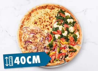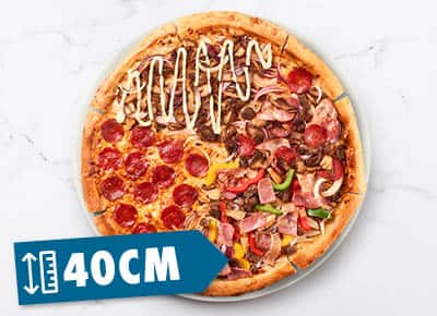 Voetbal en pizza, een match die altijd scoort ๐ Sharing is caring als het gaat om onze nieuwe XXL Quattro pizza's ๐. Een pizza van 40 cm belegd met vier verschillende pizzasmaken