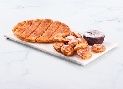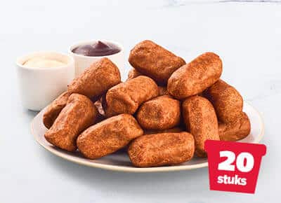 Jouw favoriete snacks in 1 box! ๐ Kies uit de Snackboxen Crispy Oven Fries of Cheesybread, beide met 5 mini frikandellen en 4 Kick'n Chicken + een sausje naar keuze of ga voor een losse portie frikandellen. Liever iets zoets? Kies dan uit de Sweetboxen Cinnastix of Choco Lotta Pizza, beide met 10 poffertjes en een lavacake!